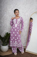 This elegant suit set is crafted from soft, flowy Modal Fabric, featuring stunning White Chikankari-Inspired Thread Embroidery that creates a bold contrast and eye-catching appeal.