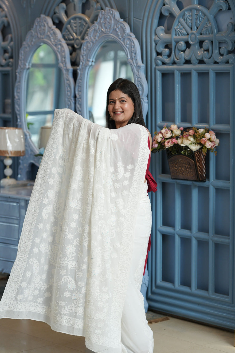 Dhvani Pure White Viscose Georgette Chikankari Saree
