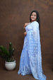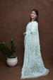 Crafted from lightweight, flowy Faux Georgette Fabric, this saree drapes beautifully and ensures all-day comfort. The surface is adorned with intricate Chikankari embroidery, showcasing traditional floral and paisley motifs that highlight the artistry of Lucknowi handwork.