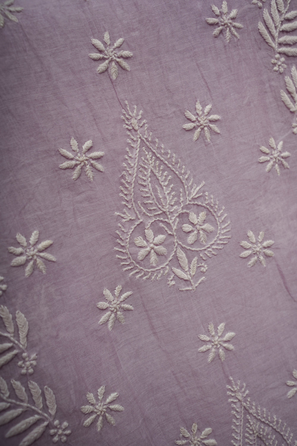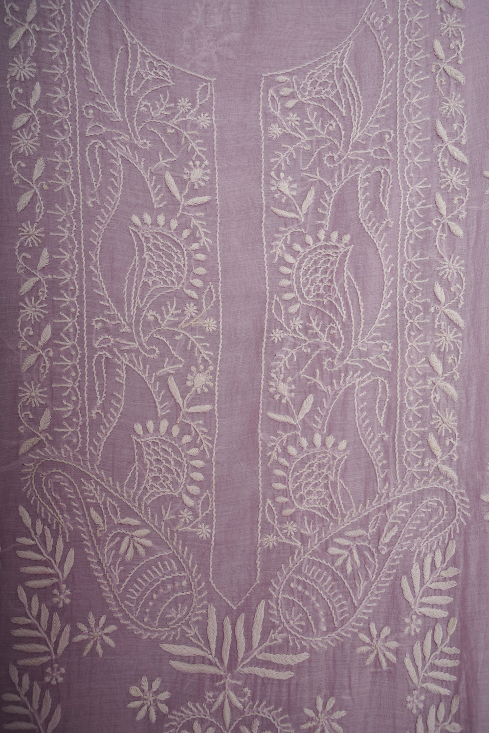 Mulmul Cotton- Chikankari Unstitched 3 Pc Suit Set-Lavender