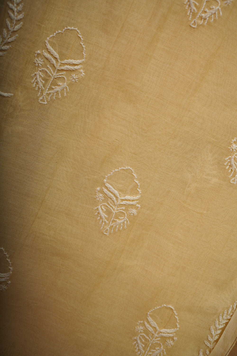Mulmul Cotton- Chikankari Unstitched 3 Pc Suit Set-Light Yellow
