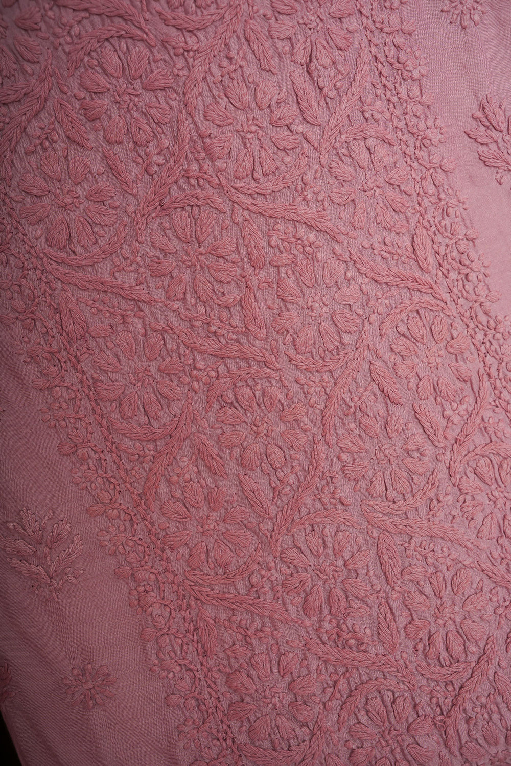 Muslin- Heavy Chikankari UnStitched 3 Pc Suit Set -Powder Pink