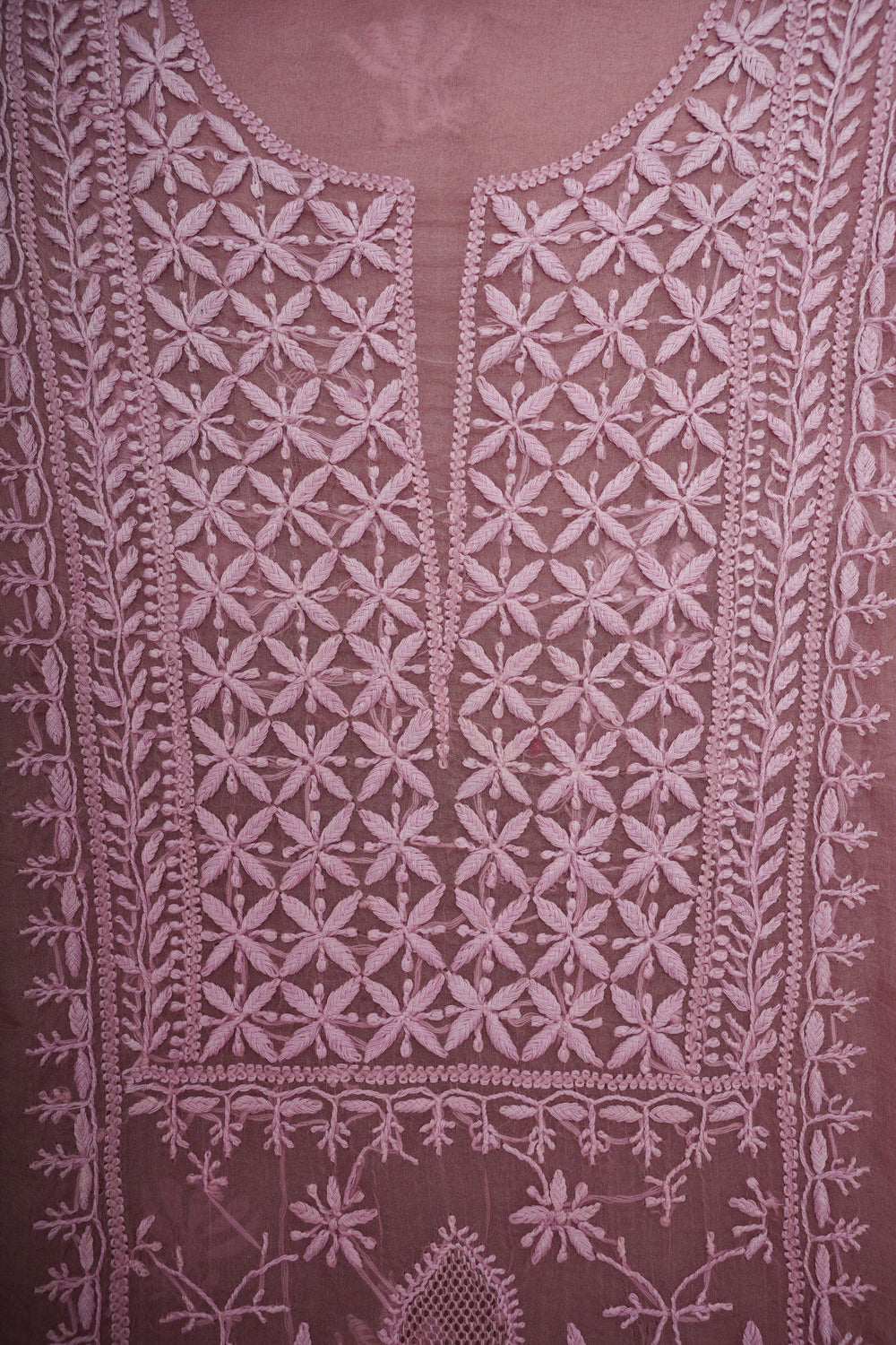 Organza- Chikankari Unstitched 3 Pc Suit Set with Jaali-Dusty Rose